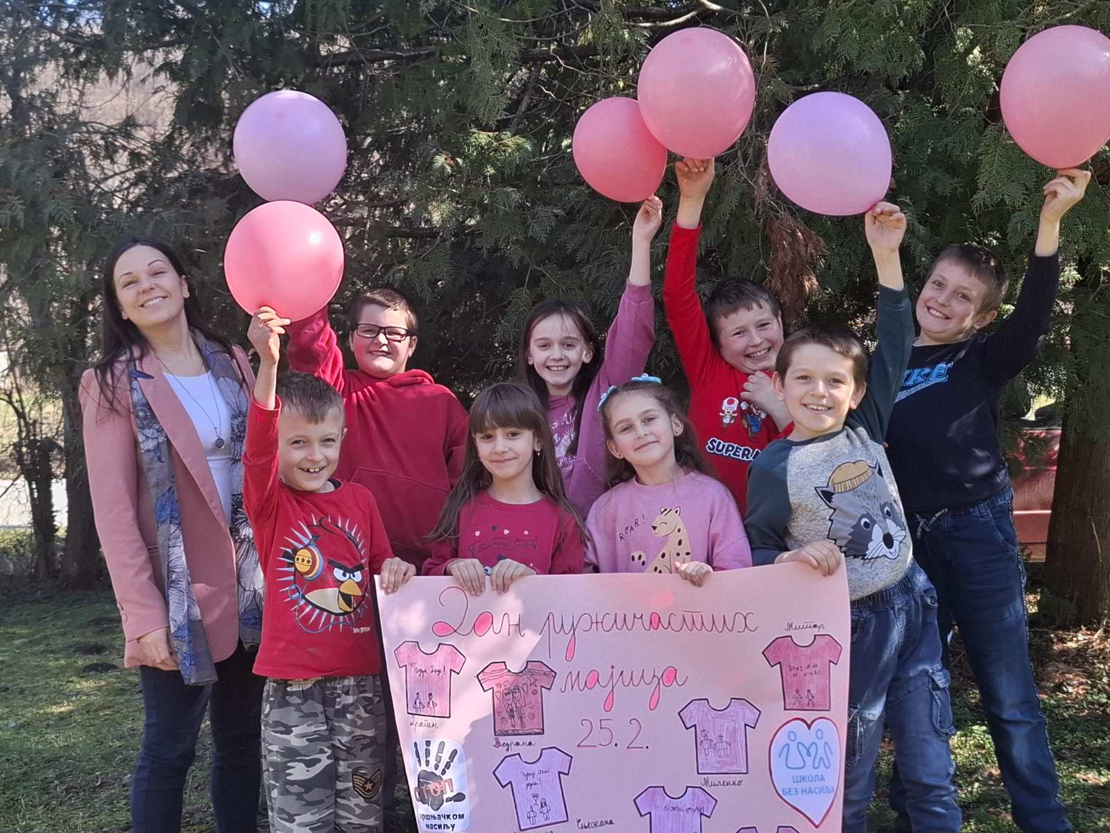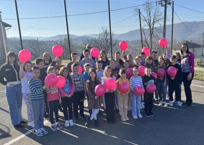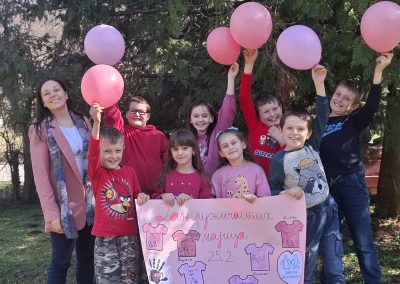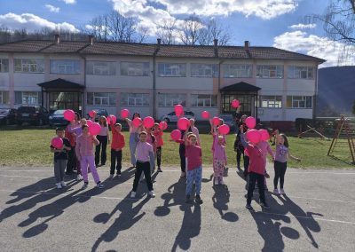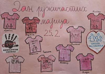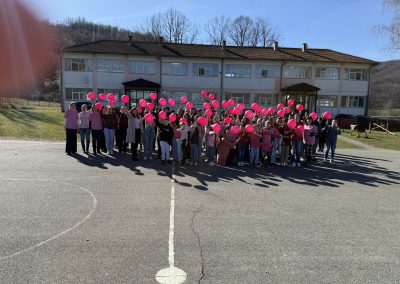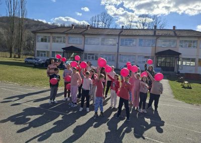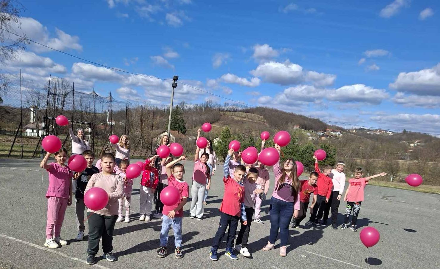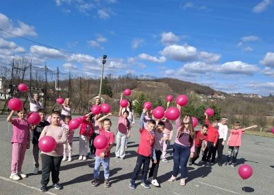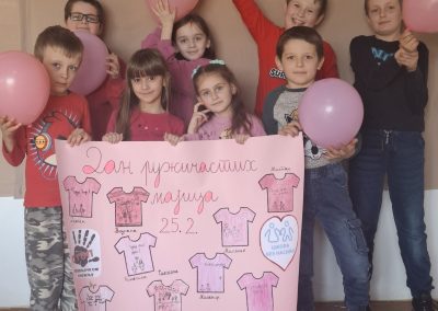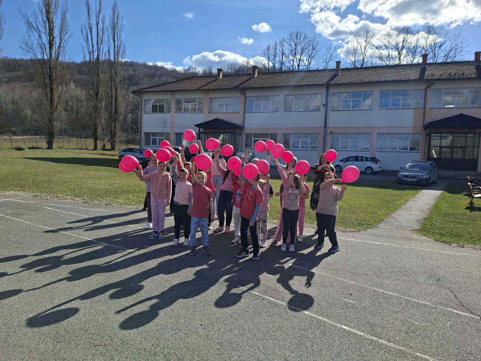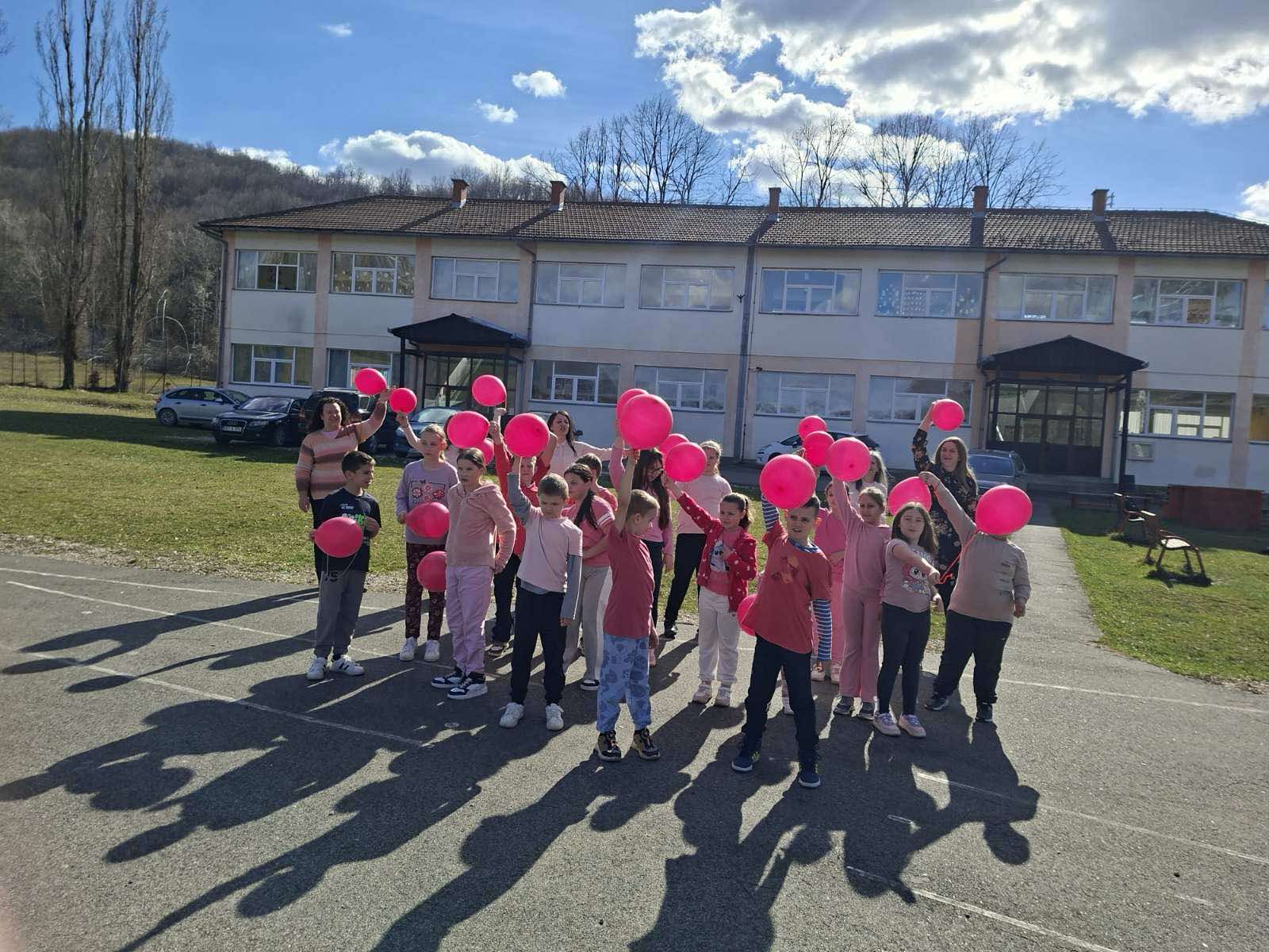 Ученици су са поносом носили ружичасте мајице као симбол подршке и јединства, а школско двориште су се играли са ружичасти балоним који су додатно уљепшали атмосферу и послали снажну поруку: СТОП ВРШЊАЧКОМ НАСИЉУ!