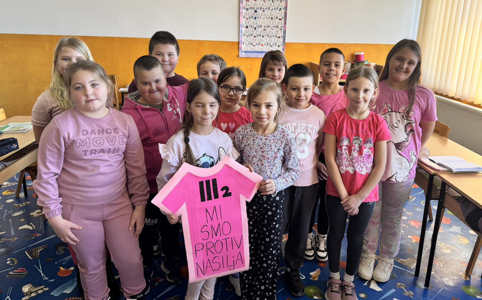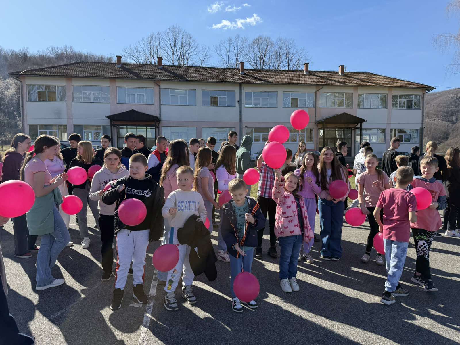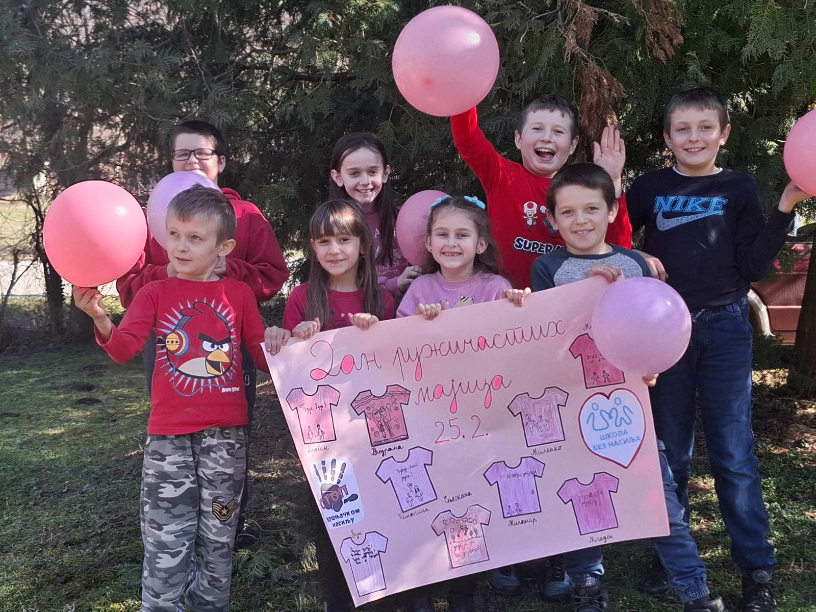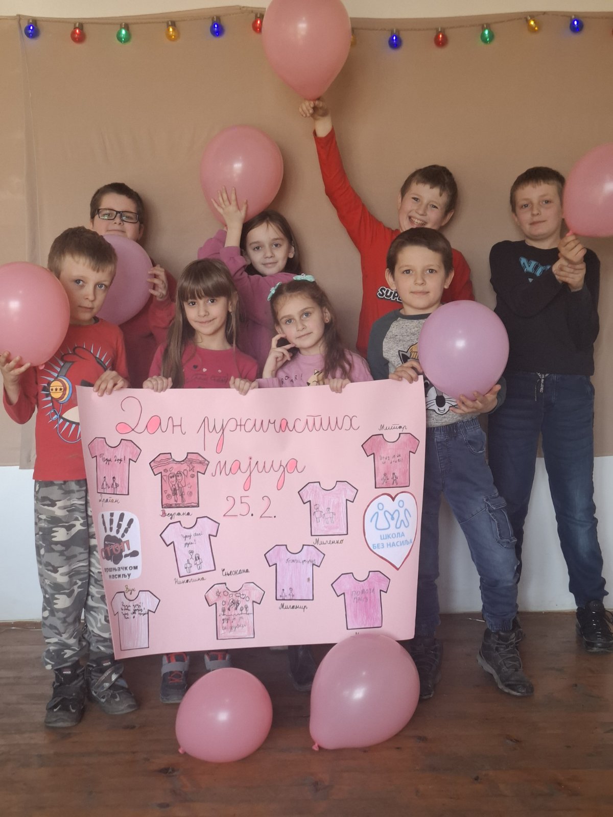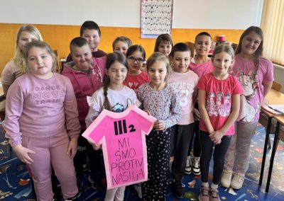 Ученици су са поносом носили ружичасте мајице као симбол подршке и јединства, а школско двориште су се играли са ружичасти балоним који су додатно уљепшали атмосферу и послали снажну поруку: СТОП ВРШЊАЧКОМ НАСИЉУ!