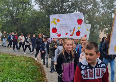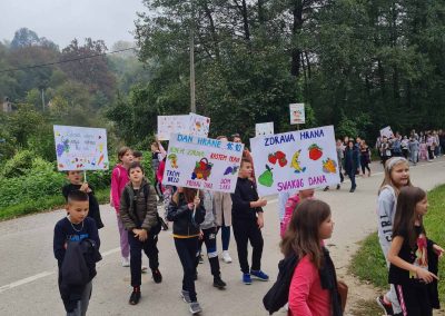 Један од веома важних датума који треба да обиљежавамо је 16.октобар, Дан хране. Већ три деценије кроз различите слогане људи се труде да пробуде свијест о производњи хране и њеној уској повезаности са будућности планете земље. Запослени у нашој школи труде подстицати ученике на здравију исхрану. Учитељи и наставници кроз часове одјељенских заједница често скрећу пажњу на исхрану и важност физичке активности. Заједничким залагањем дужи низ година обиљежавамо Дан здраве хране. Ове године главна манифестација одржала се у подручном одјељењу Палежница Доња, којој је претходила израда плаката са порукама о здравим навикама. Шетњом од централне школе ученици, родитељи и школско особље промовисали су здраве навике. Богате штандове са домаћим производима, слатким и сланим делицијама припремиле су вриједне руке мајки и бака наших ученика. Осмислили смо и такмичење у избору најукусније хране гдје је сваки разред (одјељење) изабрало једно репрезентативно јело, а комисија у саставу педагога Миладе Кузмић, библиотекара Анђелике Пеулић и учитеља Далибора Стјепановића изабрала је најукусније. Побједници су награђени воћно-слатким пакетима.