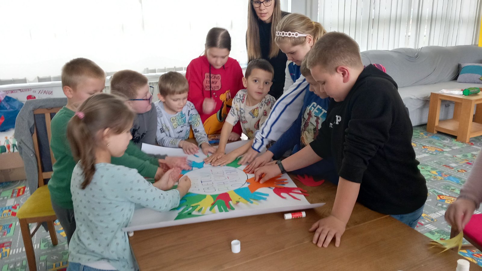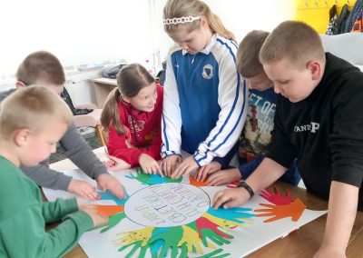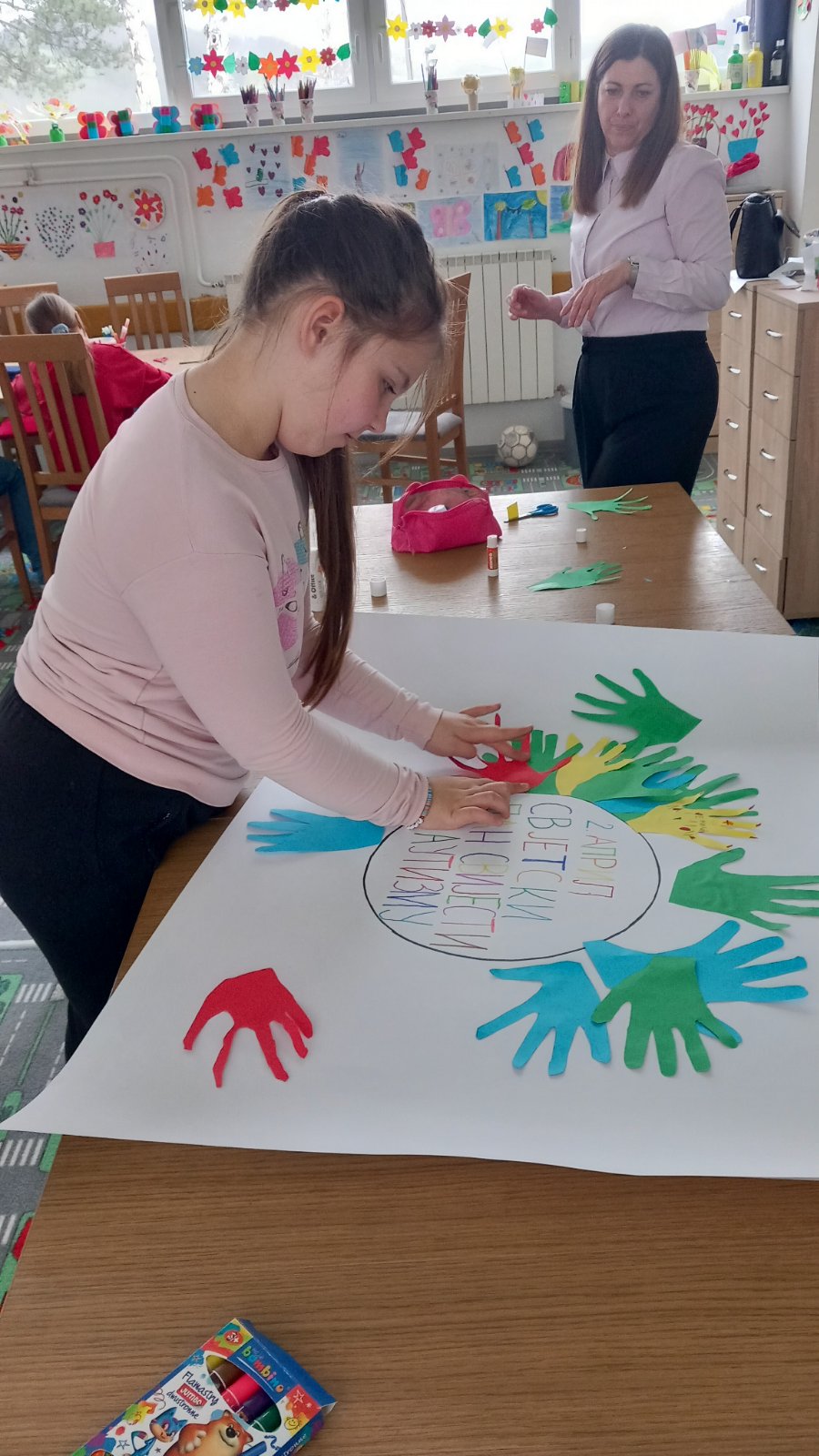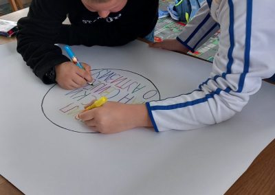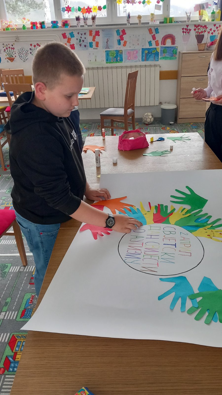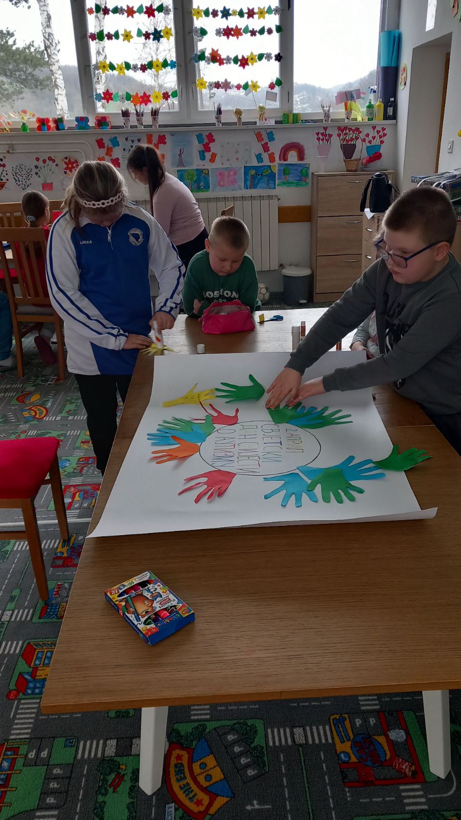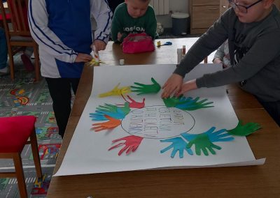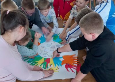 Ученици првог разреда, заједно са другарима из продуженог боравка, учествовали су у изради паноа посвећеног овој теми. Кроз креативан рад, разговор и дружење, ученици су учили о важности подршке, пријатељства и уважавања сваког појединца.