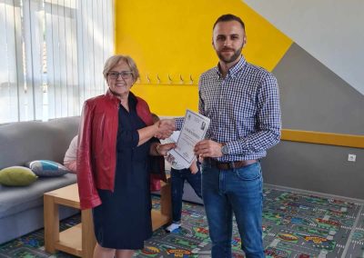 Велику захвалност изражавамо господину Нерину Диздару, министру у Федералном министарству расељених особа и избјеглица за донацију средстава којима је купљен намјештај за просторију продуженог боравка.