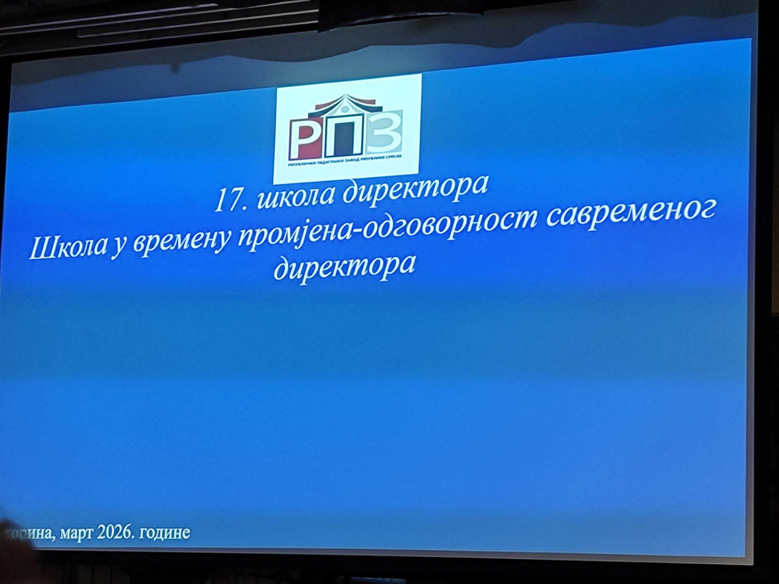 👩‍🏫 Директор школе, Татјана Ибрахимовић, присуствовала је 17. школи директора под називом „Школа у времену промјена – одговорност савременог директора“, која је одржана у периоду од 3. до 5. марта на Јахорини.